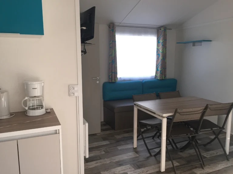 Un mobil-home plus spacieux avec toutes les commodités pour un séjour pratique et agréable en bord de mer.